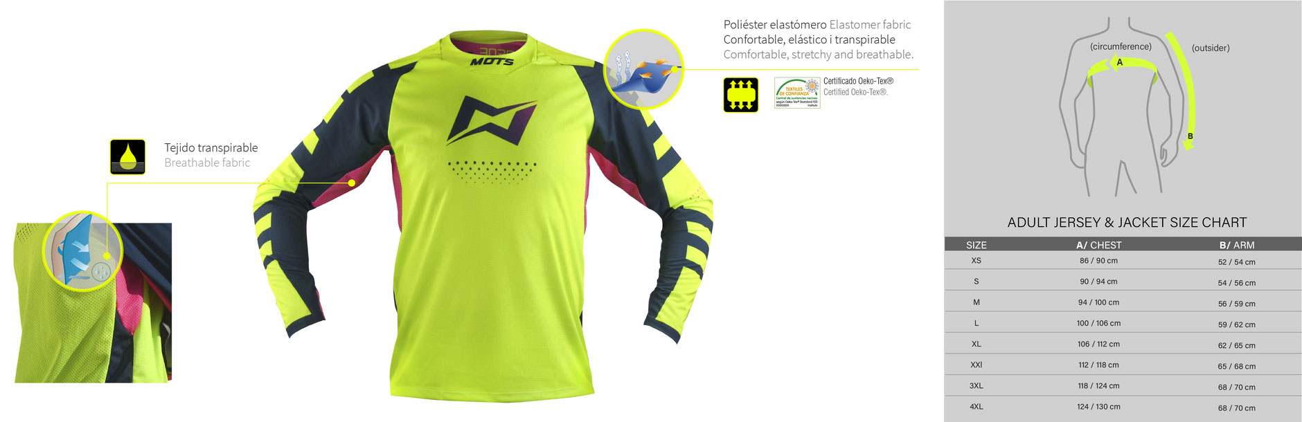 Anatomical pattern on the sleeves, offering an adjustment in the running position.